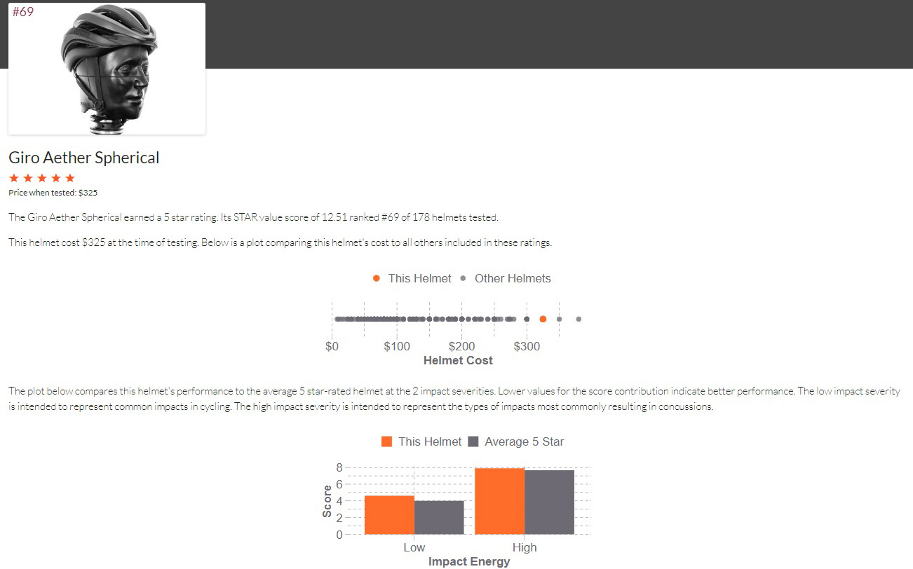 During my research on helmets, I stumbled across a company called Virginia Tech they test and rate helmets from a range of sports. They are not paid by the manufacturers for the testing and are independent. Important when you consider the power that marketing can have.